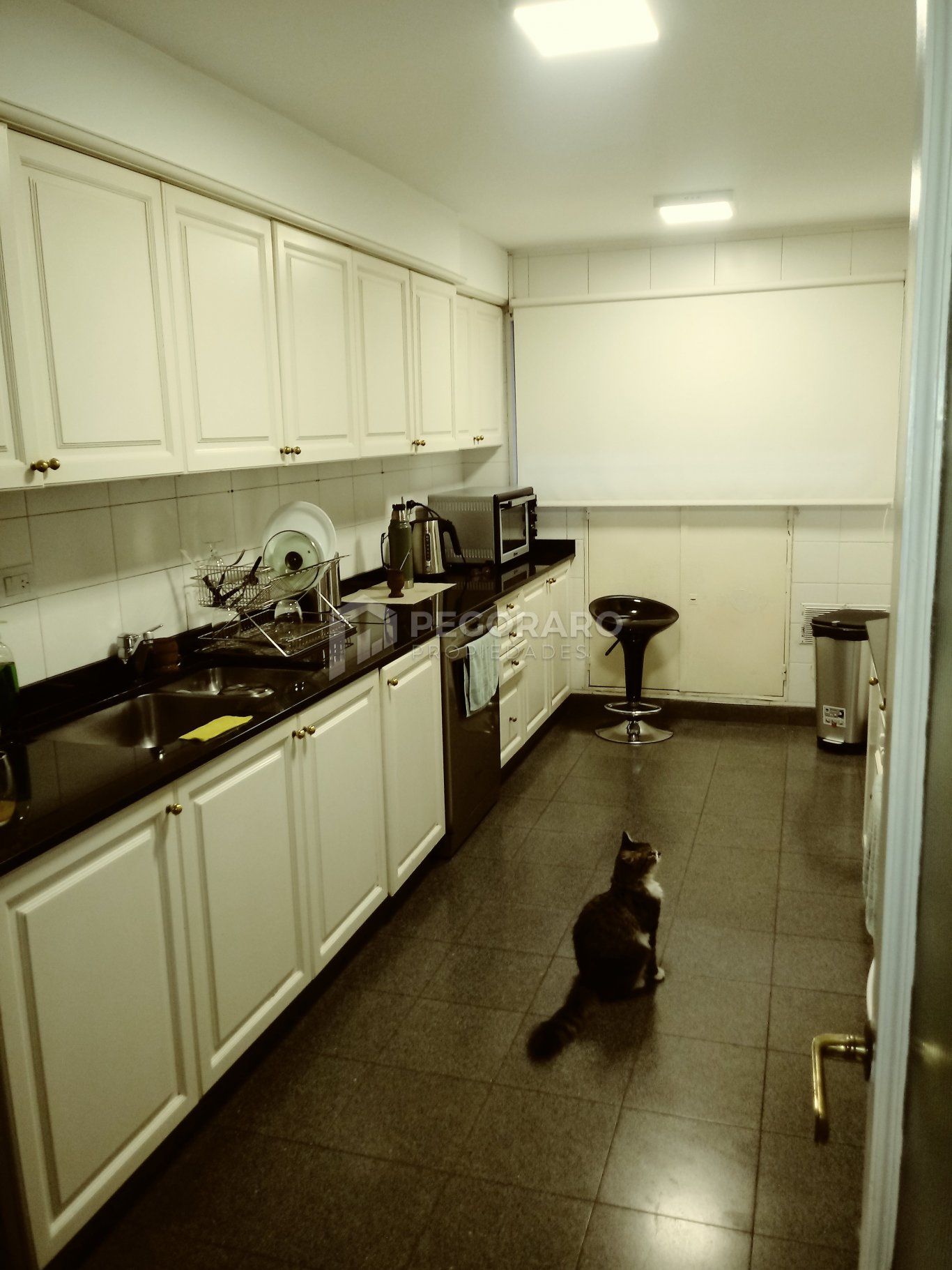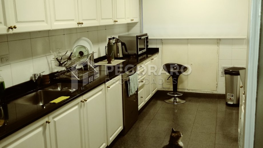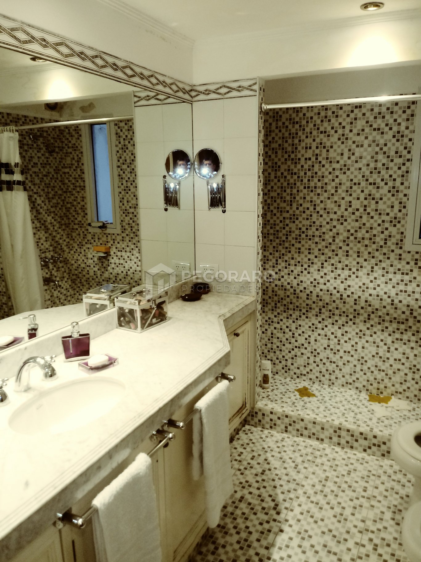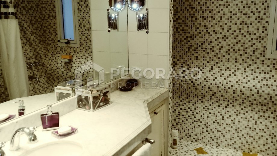 Distribución: 8 ambientes definidos y todos ventilados. Palier exclusivo con ingreso desde el ascensor principal a un inmenso living, estar comedor separado, cocina separada, lavadero separado, 4 baños , 4 dormitorios grandes mas dependencias de servicio, uno de los dormitorios es en suite (baño de marmol) y con vestidor. Orientación ESTE-OESTE. Dos amplias y cómodas cochera con acceso desde el mismo edificio y portón automático. Vale destacar la excelente doble circulación ya que posee el nucleo de ascensores y escaleras en el centro de la unidad.