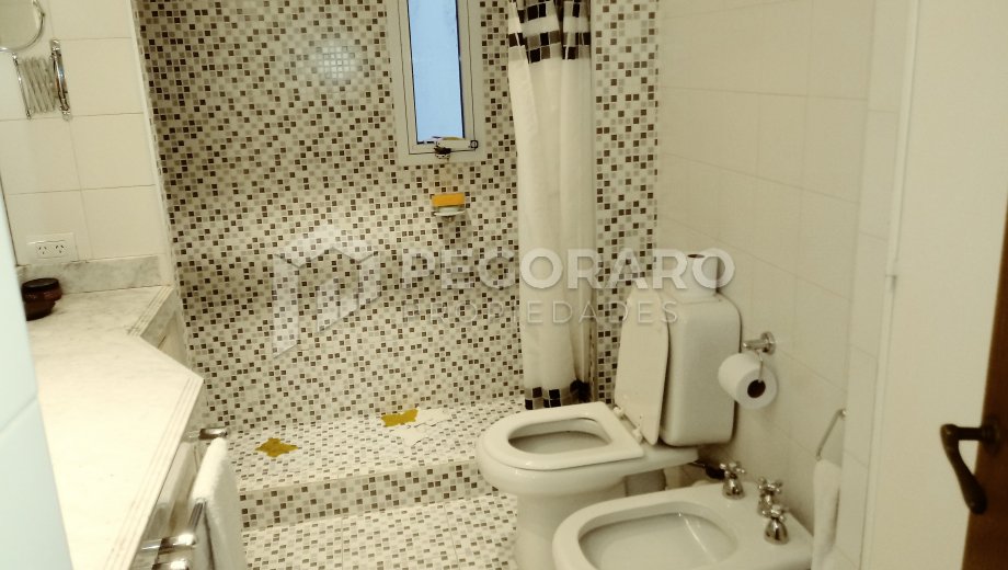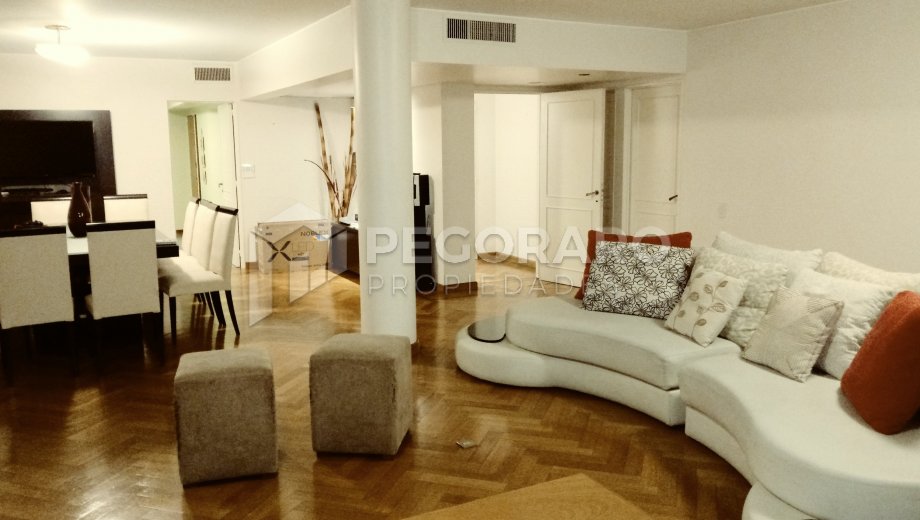 Terminaciones: Edificio con palier de categoría, ingresos al departamento por puertas blindadas, pisos de madera maciza plastificados y porcelanatos en cocina, cocina completa con muebles de alacena y bajo mesada, lavadero separado, baños con losa sanitaria y griferías de las mejores marcas, mesadas de mármol, placares terminados, balcón gigante corrido al frente. Equipo de climatización central frio/calor propio del dpto y además 6 equipos de Aire acondicionado individuales, cortinas en todos los ambientes y artefactos de iluminación.