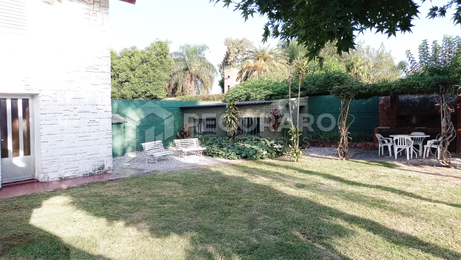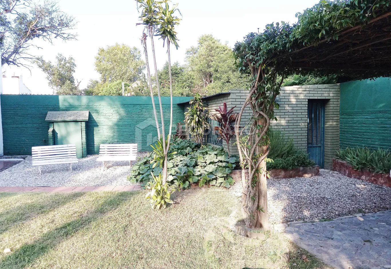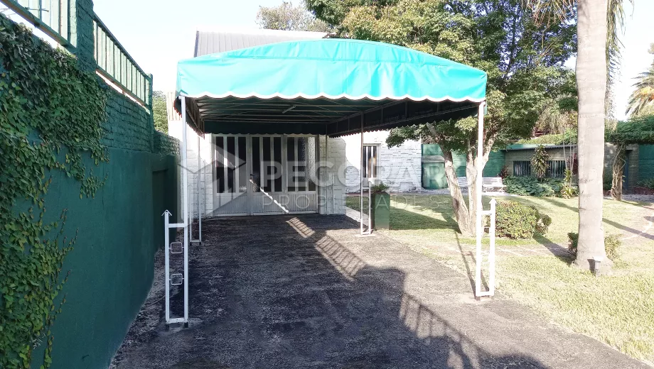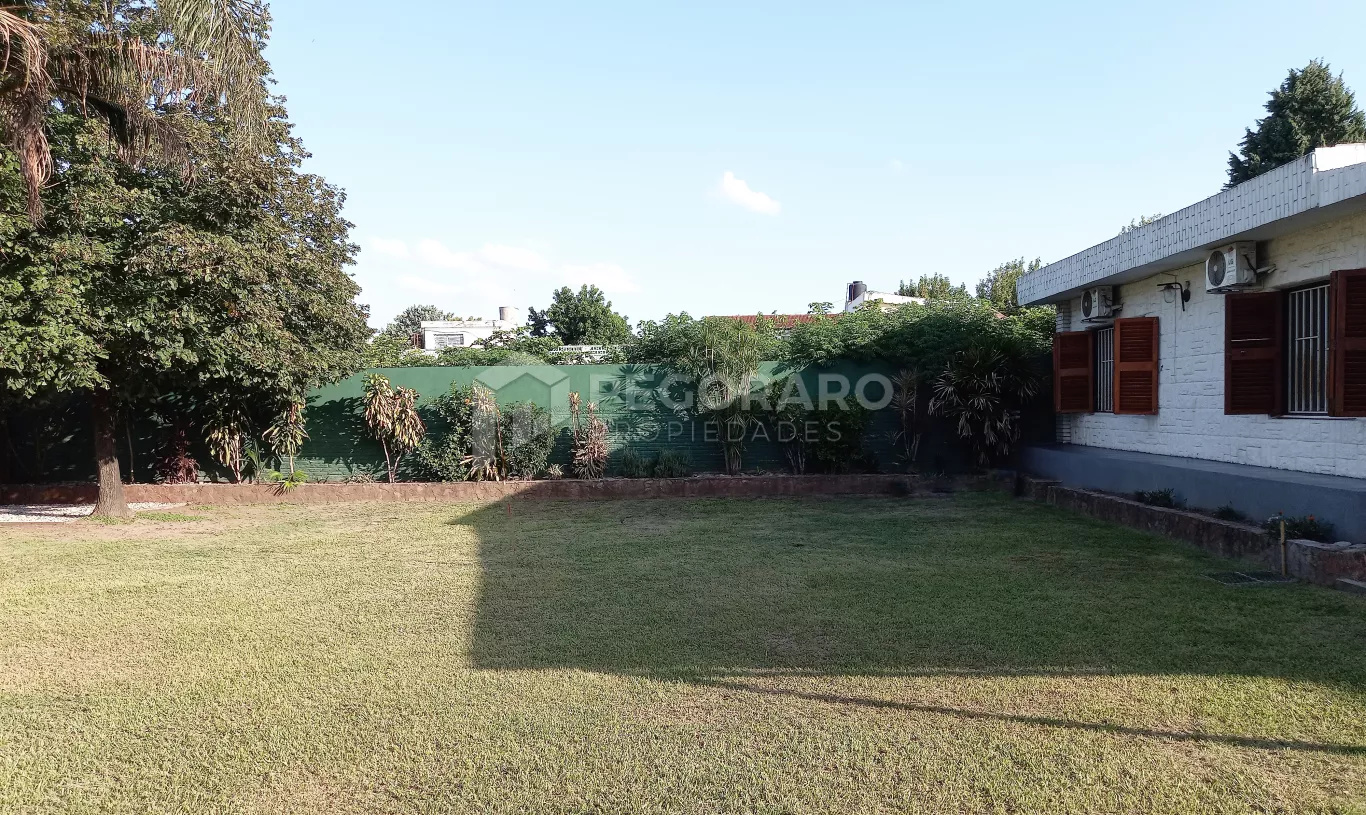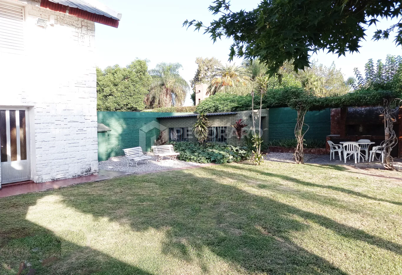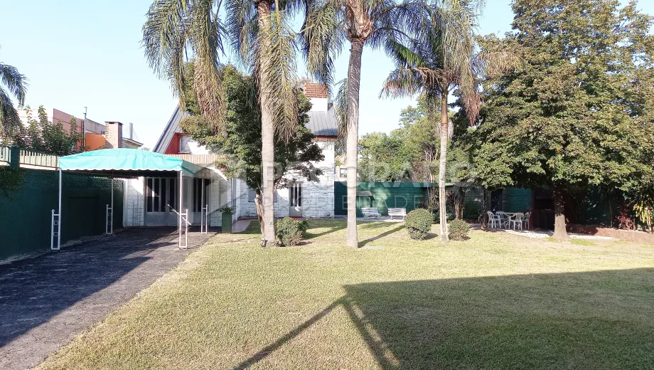Casa principal: Consta de ingreso principal a un living en doble altura con excelente luminosidad el cual se conecta con una generosa cocina comedor la cual también tiene un ingreso secundario, continuando a un íntimo que distribuye a tres dormitorios, uno con baño en suite y otro baño completo. Las tres habitaciones con ventanas hacia el parque con orientación norte y este lo que les brinda excelente luz natural, dos de ellas con inmensos placares. La habitación principal fue remodelada recientemente con materiales de primera calidad. El lavadero es independiente y se encuentra junto al acceso a la terraza la cual es transitable y puede construirse en altura si se desease ampliar. Al frente encontramos una galería con celosias de madera y gran retiro de jardín. Agua caliente por calefon y calefacción por estufas, ambas por gas natural, refrigeración por split individuales. Techos de chapa en living y loza en cocina y dependencias. Los pisos son de alfombra en living y dormitorios secundarios, porcelanato en dormitorio pincipal y mozaicos en baños y cocina comedor. Muchas de sus aberturas son de madera. En el living encontramos un hogar que se combina con terminaciones en madera.