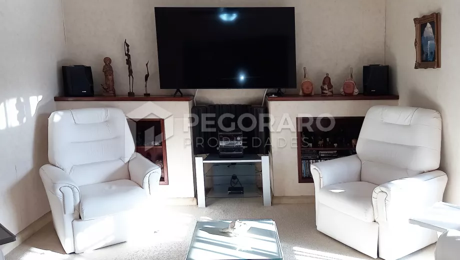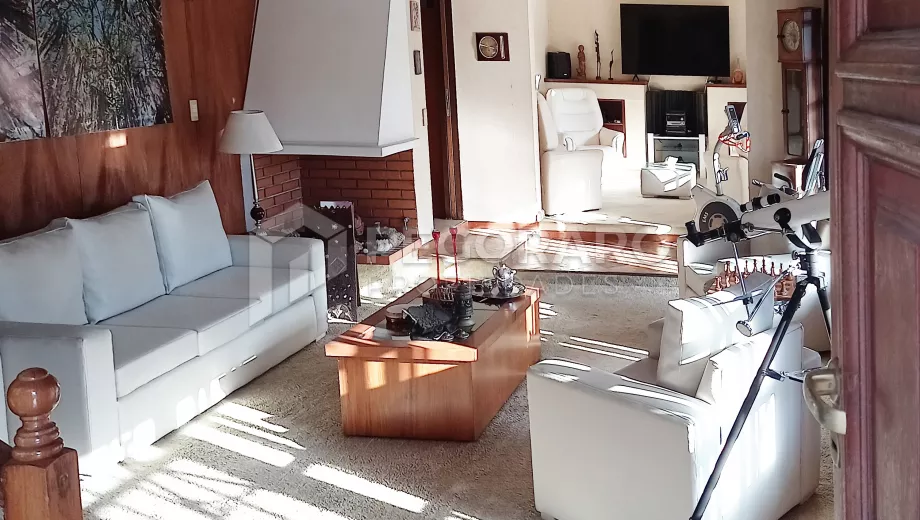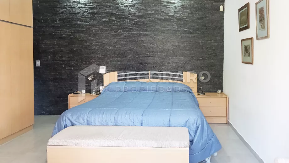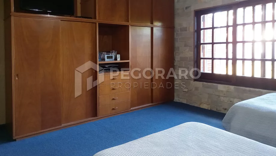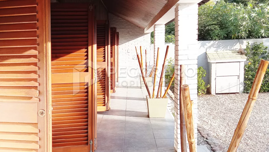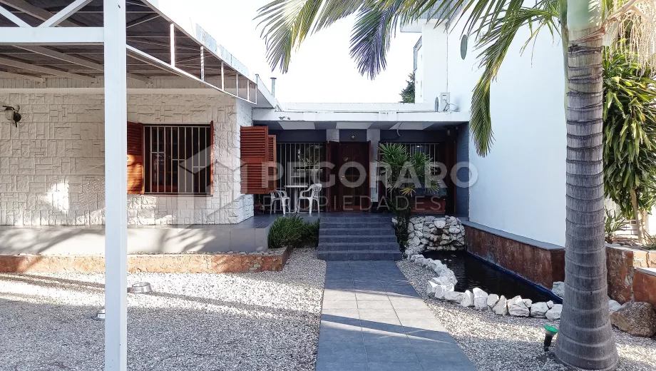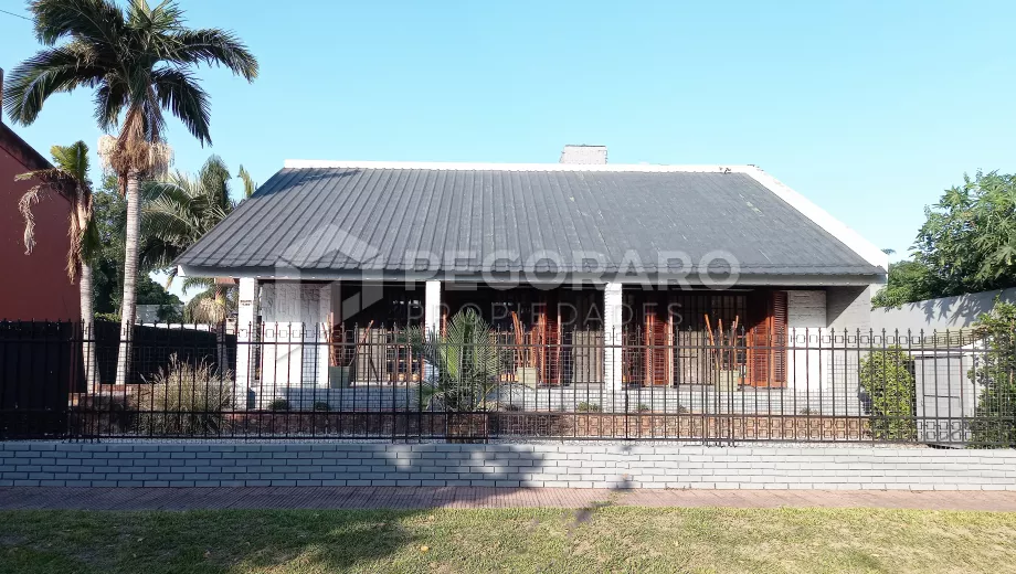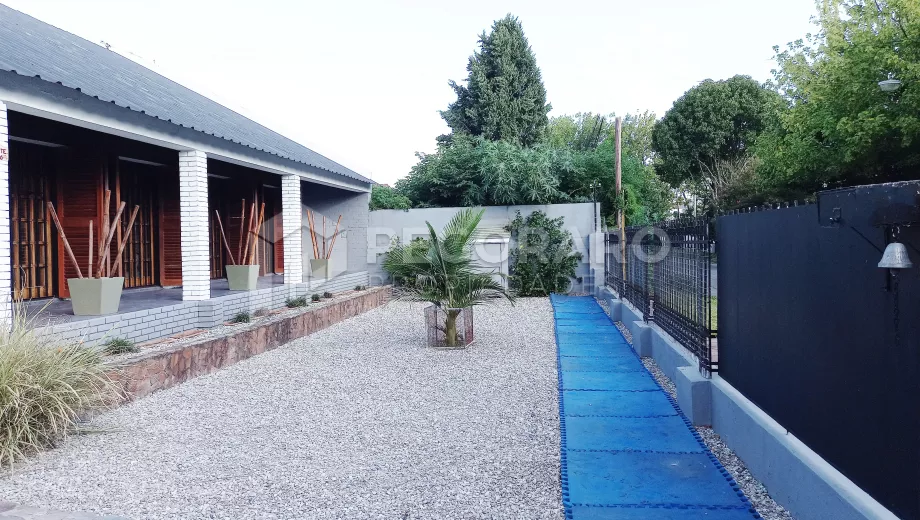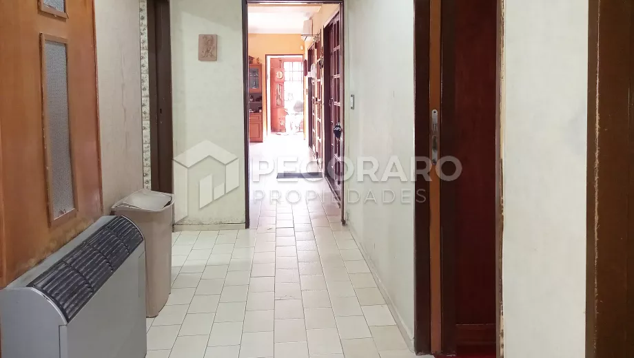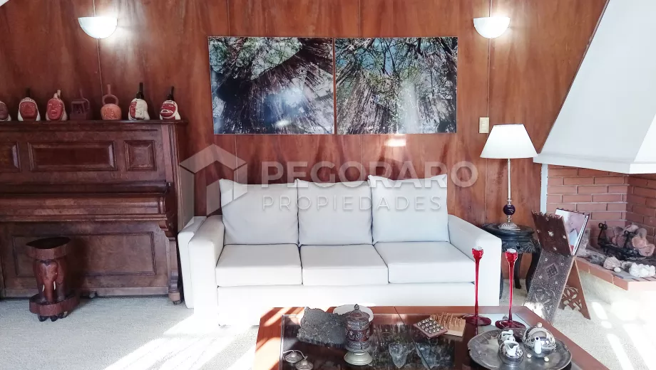 Casa principal: Consta de ingreso principal a un living en doble altura con excelente luminosidad el cual se conecta con una generosa cocina comedor la cual también tiene un ingreso secundario, continuando a un íntimo que distribuye a tres dormitorios, uno con baño en suite y otro baño completo. Las tres habitaciones con ventanas hacia el parque con orientación norte y este lo que les brinda excelente luz natural, dos de ellas con inmensos placares. La habitación principal fue remodelada recientemente con materiales de primera calidad. El lavadero es independiente y se encuentra junto al acceso a la terraza la cual es transitable y puede construirse en altura si se desease ampliar. Al frente encontramos una galería con celosias de madera y gran retiro de jardín. Agua caliente por calefon y calefacción por estufas, ambas por gas natural, refrigeración por split individuales. Techos de chapa en living y loza en cocina y dependencias. Los pisos son de alfombra en living y dormitorios secundarios, porcelanato en dormitorio pincipal y mozaicos en baños y cocina comedor. Muchas de sus aberturas son de madera. En el living encontramos un hogar que se combina con terminaciones en madera.