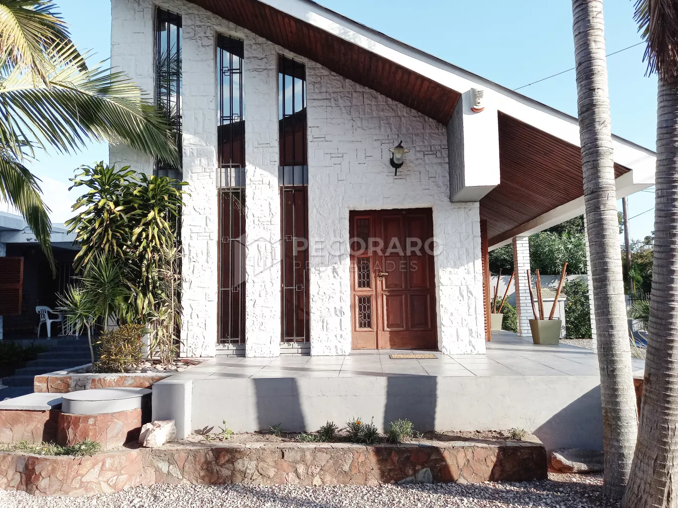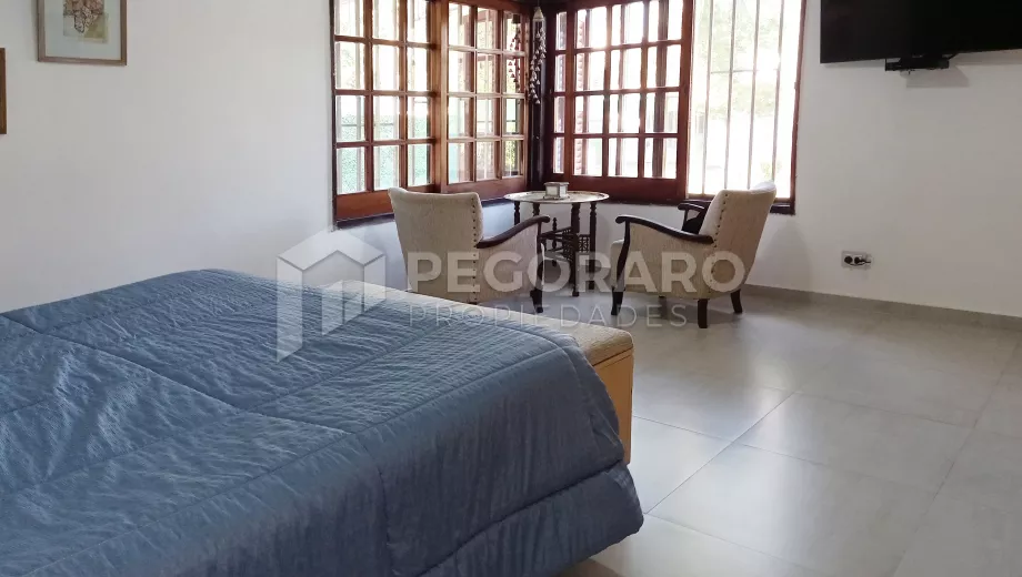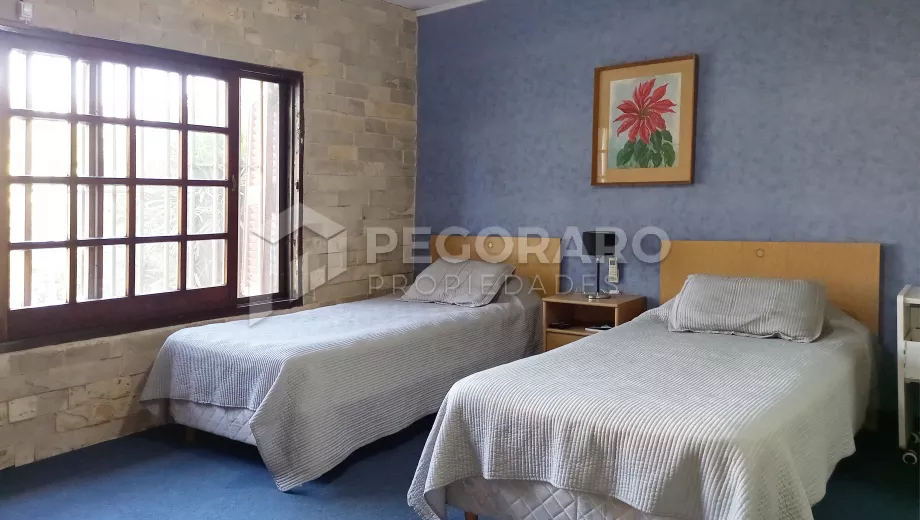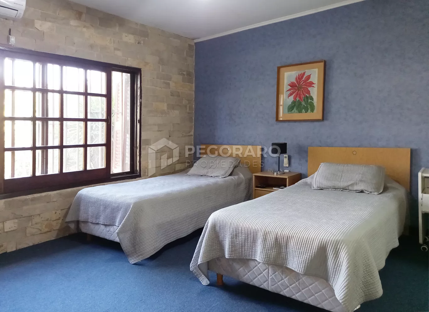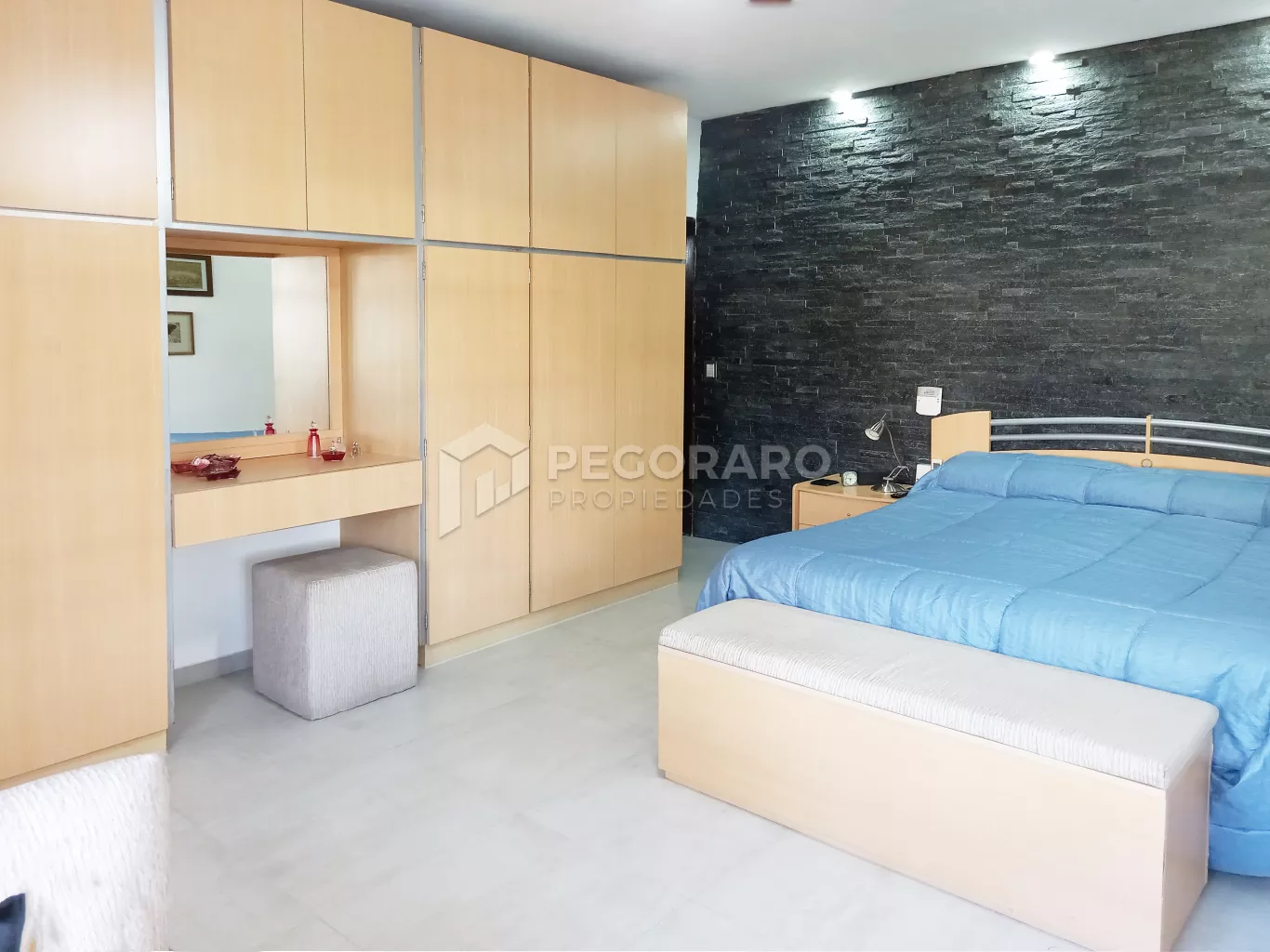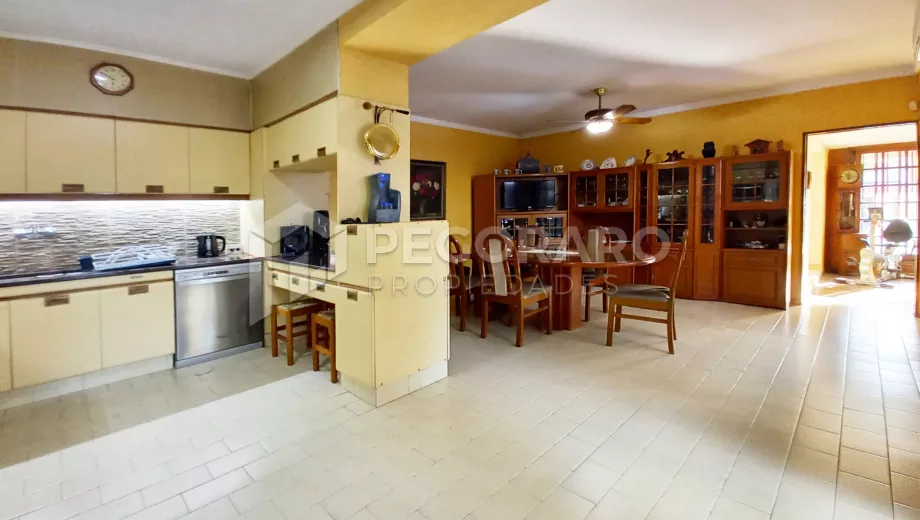Casa principal: Consta de ingreso principal a un living en doble altura con excelente luminosidad el cual se conecta con una generosa cocina comedor la cual también tiene un ingreso secundario, continuando a un íntimo que distribuye a tres dormitorios, uno con baño en suite y otro baño completo. Las tres habitaciones con ventanas hacia el parque con orientación norte y este lo que les brinda excelente luz natural, dos de ellas con inmensos placares. La habitación principal fue remodelada recientemente con materiales de primera calidad. El lavadero es independiente y se encuentra junto al acceso a la terraza la cual es transitable y puede construirse en altura si se desease ampliar. Al frente encontramos una galería con celosias de madera y gran retiro de jardín. Agua caliente por calefon y calefacción por estufas, ambas por gas natural, refrigeración por split individuales. Techos de chapa en living y loza en cocina y dependencias. Los pisos son de alfombra en living y dormitorios secundarios, porcelanato en dormitorio pincipal y mozaicos en baños y cocina comedor. Muchas de sus aberturas son de madera. En el living encontramos un hogar que se combina con terminaciones en madera.