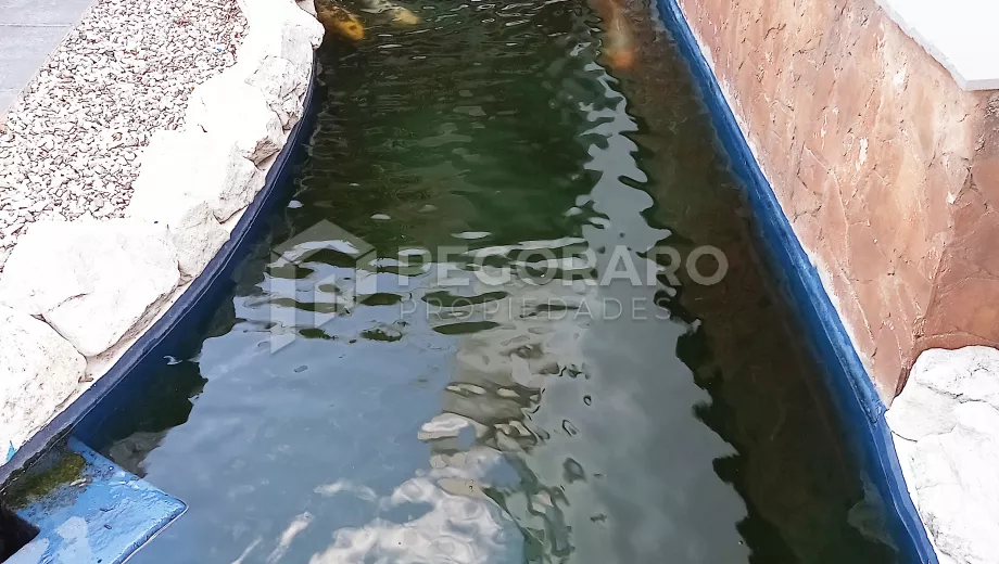 El inmenso parque esta perfectamente cuidado y decorado con luces con fotocelulas mas un estanque con cascada y peces Koi de 12 años que hace apreciar aún mas las tranquilidad de esta formidable propiedad.